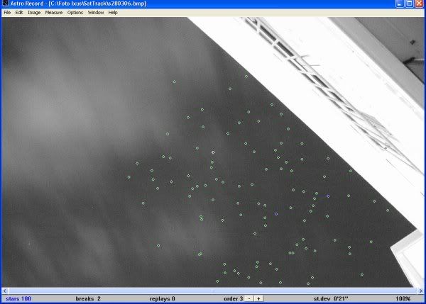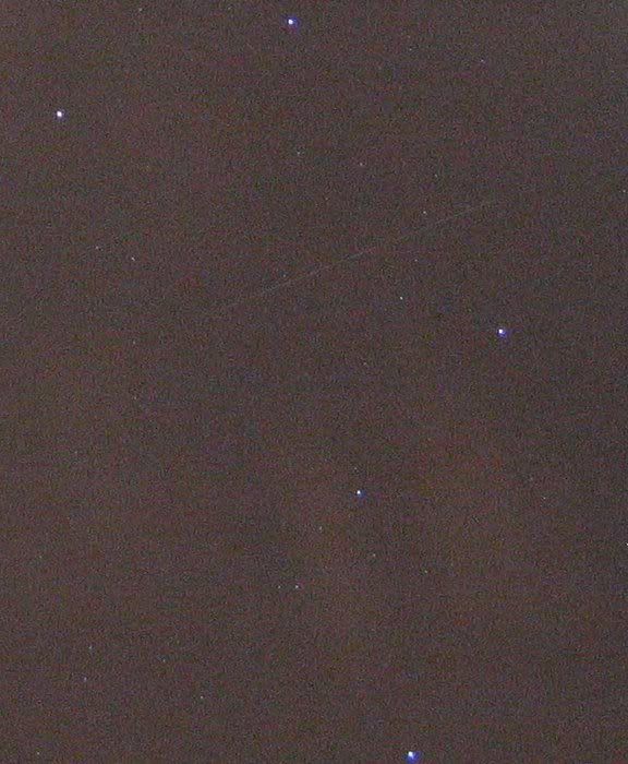Obs SatTrackCam Leiden (Cospar 4353), 28 Mar 2006: 24680 96 072A 4353 G 20060328203031100 17 75 1135096+530520 56 S+025 10 24680 96 072A 4353 G 20060328203041800 17 75 1144060+594490 56 S+025 10 ------------------------------------------------------------------------- Method: Canon Digital Ixus 400 + ASTRORECORD astrometric software. Camera at manual mode, "10 second" (= 10.7 second) exposure, wide field f2.8/7.41 mm. What these numbers mean: http://www.satellite.eu.org/position/IODformat.html These two points are almost exactly on time (both delta T -0.06s) with regard to Mike's elset 06085.80344161. The Xtrack devation is however 0.17 resp 0.19 degrees (a factor 10 larger than usual, usual is 0.01 to 0.03). ** I believe this is a real deviation value, not a measurement inaccuracy **. The trail on the image was not very bright, but crisp. The picture that yielded these two points was obtained amidst flying cloud cover: the one moment the sky was clear, 2 minutes later covered, then clear again etc..... The Big Dipper cleared only a minute before USA 129 would cross it! A minute after the passage it was clouded over again...! Only part of the resulting photographic image was not clouded, but that part yielded well enough stars for a good astrometric solution (I measured 100 stars). So, a lucky shot! Could see the satellite by the naked eye easily at about mag. +2.5 "Full" image (screenshot from ASTRORECORD in full image mode, green dots are measured stars, blue dots measured start and end of trail. Resolution reduced to make bitesize acceptable) here: http://i19.photobucket.com/albums/b176/marcoaliaslama/satellites/24680_fl.jpg Detail showing trail crossing big dipper: http://i19.photobucket.com/albums/b176/marcoaliaslama/satellites/24680_dt.jpg - Marco :-) ----- Dr Marco Langbroek - SatTrackCam Leiden, Cospar 4353 Leiden, the Netherlands. 52.15412 N, 4.49081 E (WS84), +0 m ASL SatTrackCam: http://home.wanadoo.nl/marco.langbroek/satcam.html Station (b)log: http://sattrackcam.blogspot.com Atom RSS: http://sattrackcam.blogspot.com/atom.xml e-mail: sattrackcam@wanadoo.nl ----- ------------------------------------------------------------------------- Subscribe/Unsubscribe info, Frequently Asked Questions, SeeSat-L archive: http://www.satobs.org/seesat/seesatindex.html